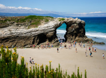 Krásná písečná pláž a přírodní útvar u severního pobřeží Španělska. Playa de las Catedrales Playa de las Catedrales se nachází nedaleko města Ribadeo u severního pobřeží Španělska. Celá