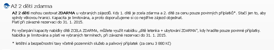 dovolena – sleva na dítě – akce admin | 22.1.2015 | | Žádné komentáře Líbil se vám tento článek? Díky za sdílení.FacebookemailTwitterPinterest Add a Comment Zrušit odpověď na komentářPro přidávání komentářů se musíte nejdříve přihlásit.