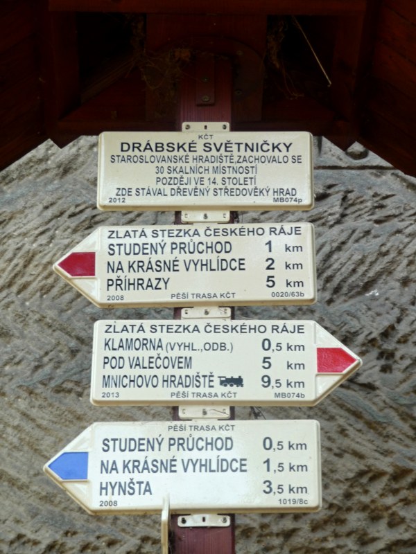 Na Drábské světničky se můžete vylézt zespodu po modré od parkoviště ve vesnici Dneboh. Do Dnebohu se dostanete po silnici z Mnichova Hradiště.