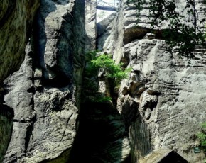 Na sedmi pískovcových blocích tyčících se 86 –141 metrů nad údolím byl před několika sty let vybudován skalní hrad, který do bitvy u Lipan obývali husité. Pevnostní soustava byla vybudována už ve 13. století na sedmi pískovcových blocích, které jsou od sebe odděleny úzkými průrvami.