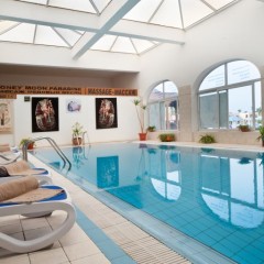 Hotel se nachází přímo u písečné pláže, která je v některých úsecích kamenitá, s pozvolným vstupem do moře nebo je přístupná sestupem z mola.