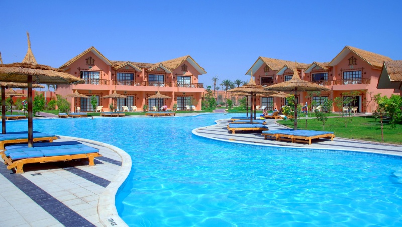 Velmi pěkný a luxusní hotel postavený v moderním egyptském stylu je tvořen hlavní budovou a mnoha dvou- až třípatrovými vilkami zasazenými do vzrostlé zahrady kolem zálivu s průzračnou vodou.