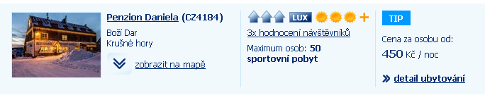 V Krušných horách a v okolí Klínovce je bohatá nabídka ubytování v hotelích, penzionech nebo chatách. Z nabídky ubytování vybíráme: