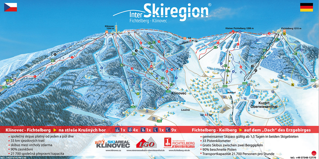 Již několik let pokračuje úspěšná přeshraniční spolupráce v rámci mezinárodního česko německého regionu. Tento InterSkiregion Fichtelberg – Klínovec nabízí 33 km sjezdových tratí všech obtížností a to již v ceně od jeden a půl denních permanentek. Přes hranice a mezi vrcholy Vás zdarma převeze skibus za 10 min.