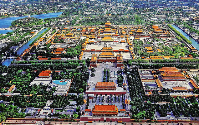 Celé Zakázané město je odehnáno 8,5 širokou a 12 m vysokou zdí a 50 širokým vodním kanálem. V celém areálu je přes 800 budov a až 9000 místností.