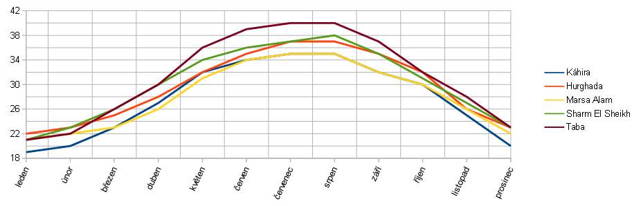 Velkou výhodou Egypta je teplota Rudého moře. Jeho teplota zůstává relativně teplá i v zimním období. Moře je tak vhodné ke koupání po celý rok.