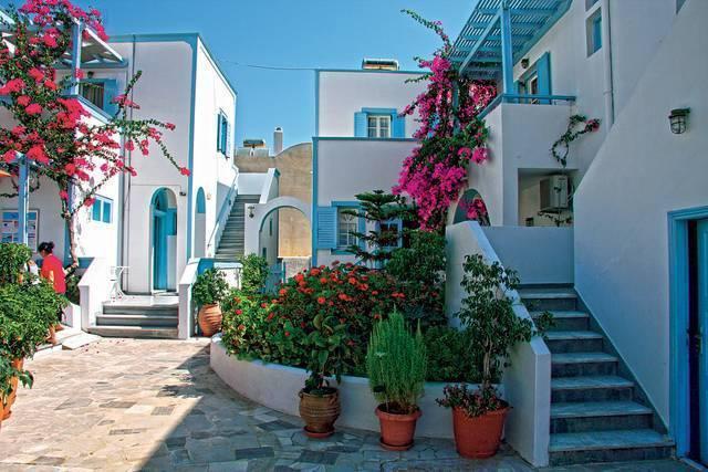 Dále se pluje na obydlený ostrov Thirassia, kde je přestávka asi dvě hodiny, kterou lze využít na koupání, na prohlídku městečka Manolas nebo na posezení v taverně u dobrého oběda.