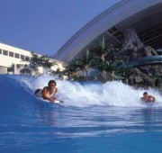 Velkou atrakcí je umělé vlnobití. Každou hodinu se spustí a neuvěřitelné vlny přicházející k pláži potěší nejen surfaře. Ano, i pod střechou se dá surfovat.