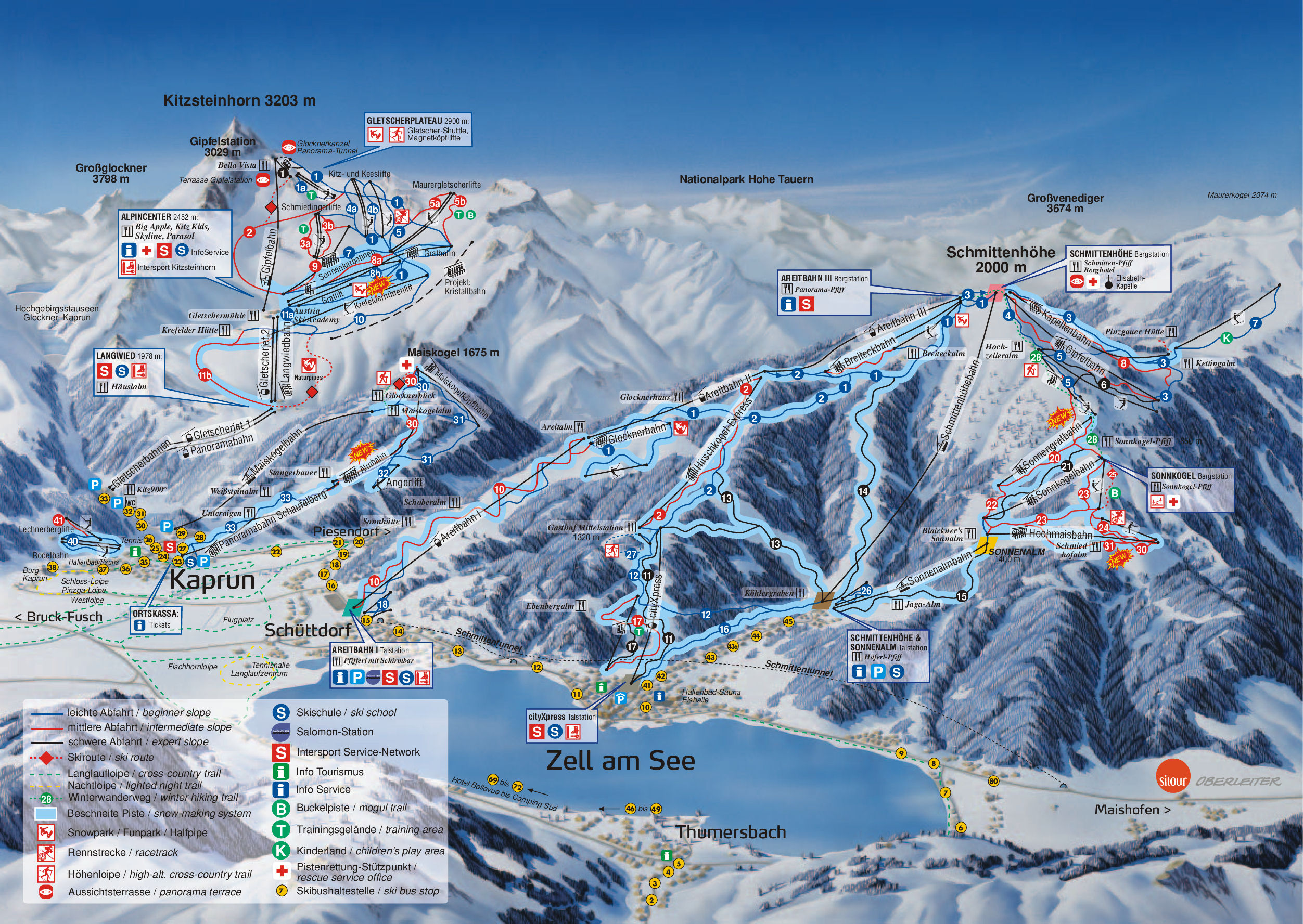 Nad alpskými městečky Kaprun a Zell am See se tyčí 3203 m vysoká hora Kitzsteihorn a Schmittenhöhe vysoká 2000 m. Dostatek sněhu zajišťuje kvalitní zasněžování v celém areálů a přítomnost ledovce Kitzsteihorn na stejnojmenné hoře.