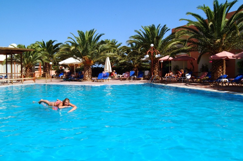 Hotel se nachází ve vesnici Platanias asi 5 km od malebného a romantického Rethymnonu. Písčito-oblázková pláž leží přibližně 200 m od hotelu (přes pobřežní komunikaci). V bezprostředním okolí hotelu se nacházejí různé restaurace, bary a obchůdky.